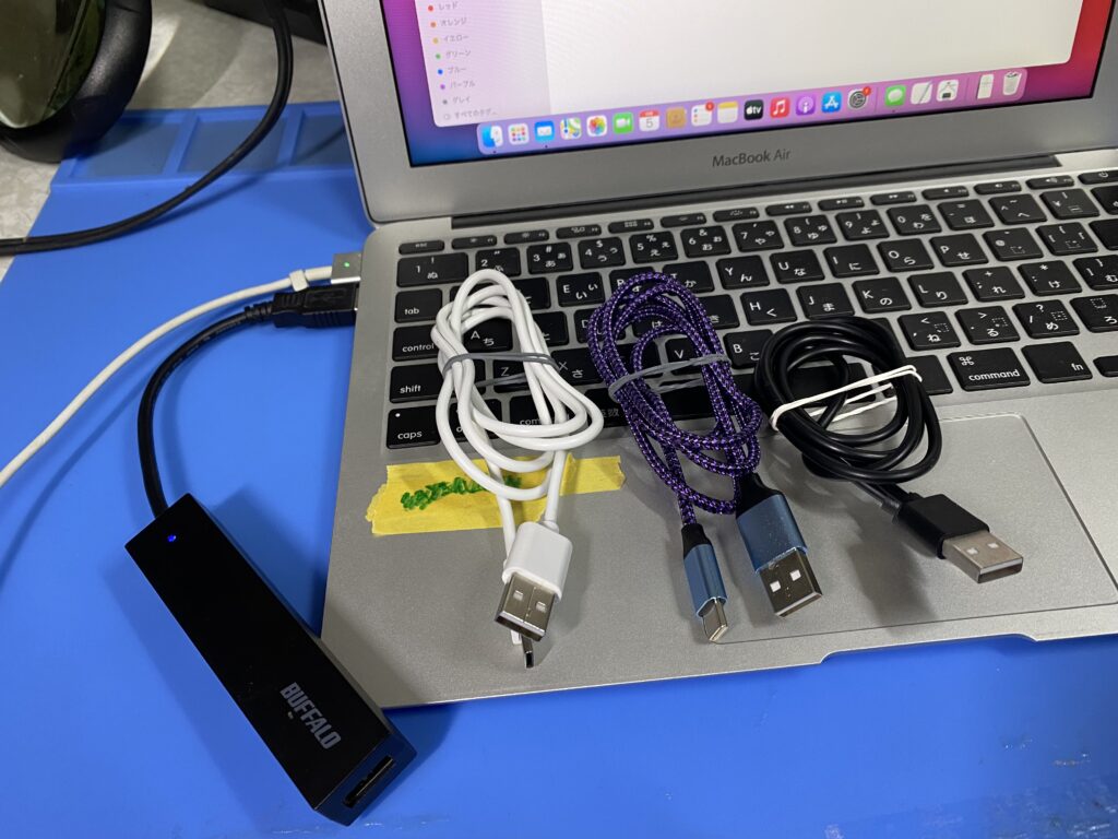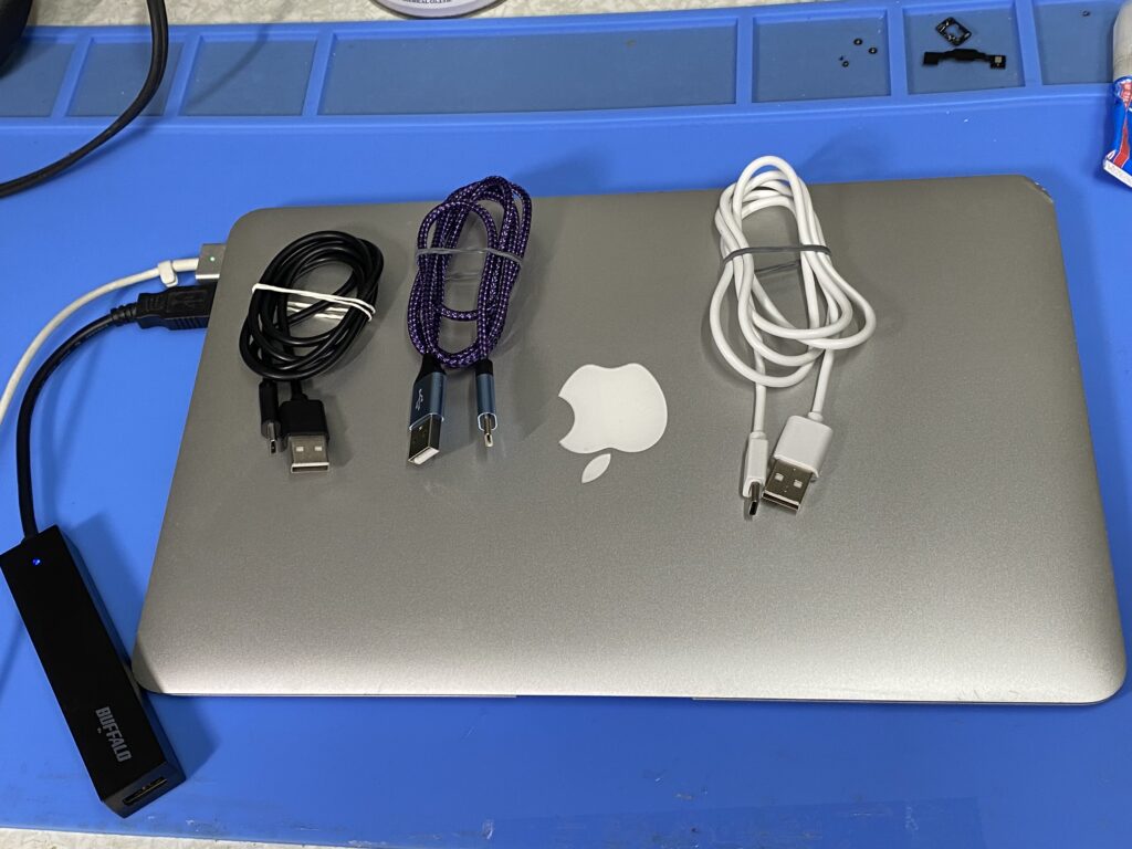 今回はたまたまマックブックAirと真ん中のアマゾンで購入したラッキーなUSBタイプCケーブルで問題解決しました。